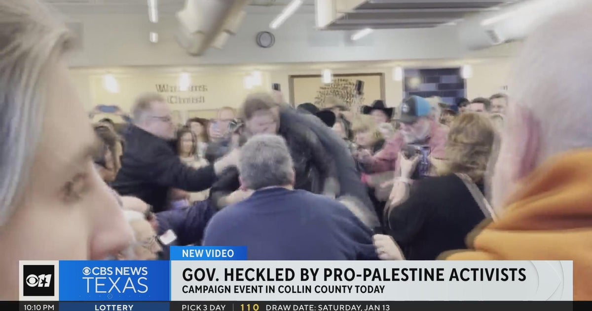 Gov. Abbott heckled by pro Palestine activists CBS Texas
